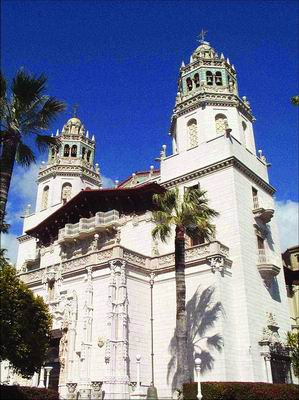 每个成功人士都想修建一座梦想中的住宅,赫斯特也一样,1919年他开始构思修建一座举世无双的私人城堡。赫氏堡建在距洛杉矶360公里的圣西蒙。这里从太平洋边开始到桑塔露西亚山,4万英亩的土地都是赫家的私产。那广袤的草场,绵延的山丘,举目可望的海景,在赫斯特心中有不可替代的位置。到1919年,当他能够实现城堡之梦时,他毫不犹豫地选择了此地作为基址。