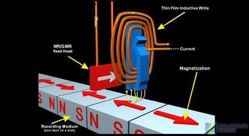 众所周知,磁盘表面涂有做为纪录使用的磁性介质,其在显微镜下呈现出来的便是一个个磁颗粒。微小的磁颗粒极性可以被磁头快速的改变,并且在改变之后可以稳定的保持,系统通过磁通量以及磁阻的变化来分辨二进制中的0或者1。也正是因为所有的操作均是在微观情况下进行,所以如果硬盘在高速运行的同时受到外力的震荡,将会有可能因为磁头拍击磁盘表面而造成不可挽回的数据损失。