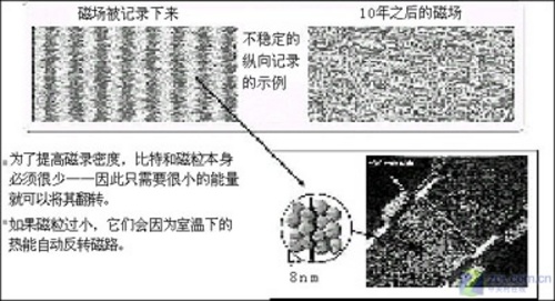 当磁颗粒的体积太小的时候,能影响其磁滞的因素就不仅仅是外部磁场了,些许的热量就会影响磁颗粒的磁滞(譬如室温下的热能),从而导致磁记录设备上的数据丢失,这种现象就是“超顺磁效应”。