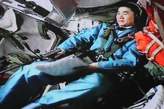 【神七飞天·报告情况】航天员景海鹏在神七飞行过程中不断与地面飞控中心保持联系,报告飞船的运行情况。