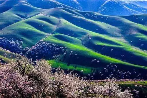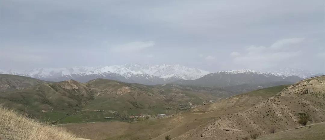 远处是白皑皑的雪山,眼前春意盎然,刚萌生绿意的草地上零星散落着嫩黄色野花,成群的牛羊在山坡悠闲地吃草。