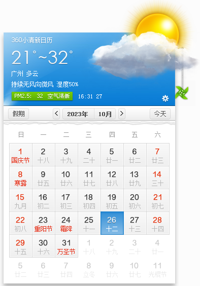360 安全卫士 - 小清新日历,桌面显示日期、时间、天气。