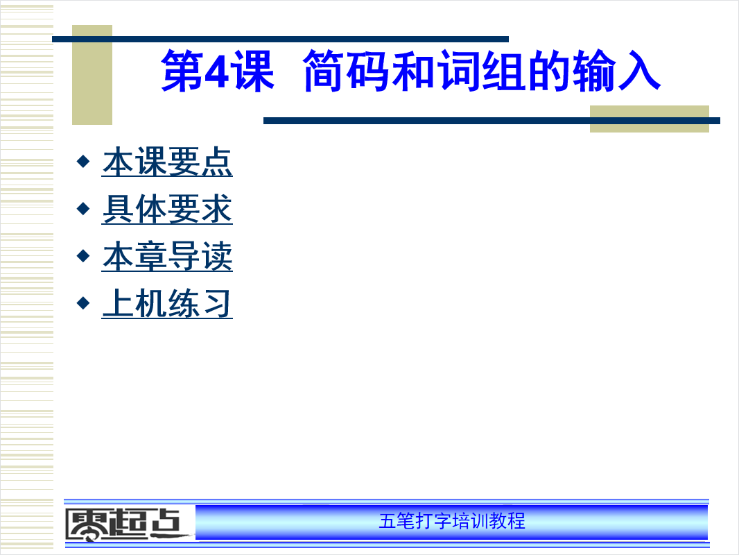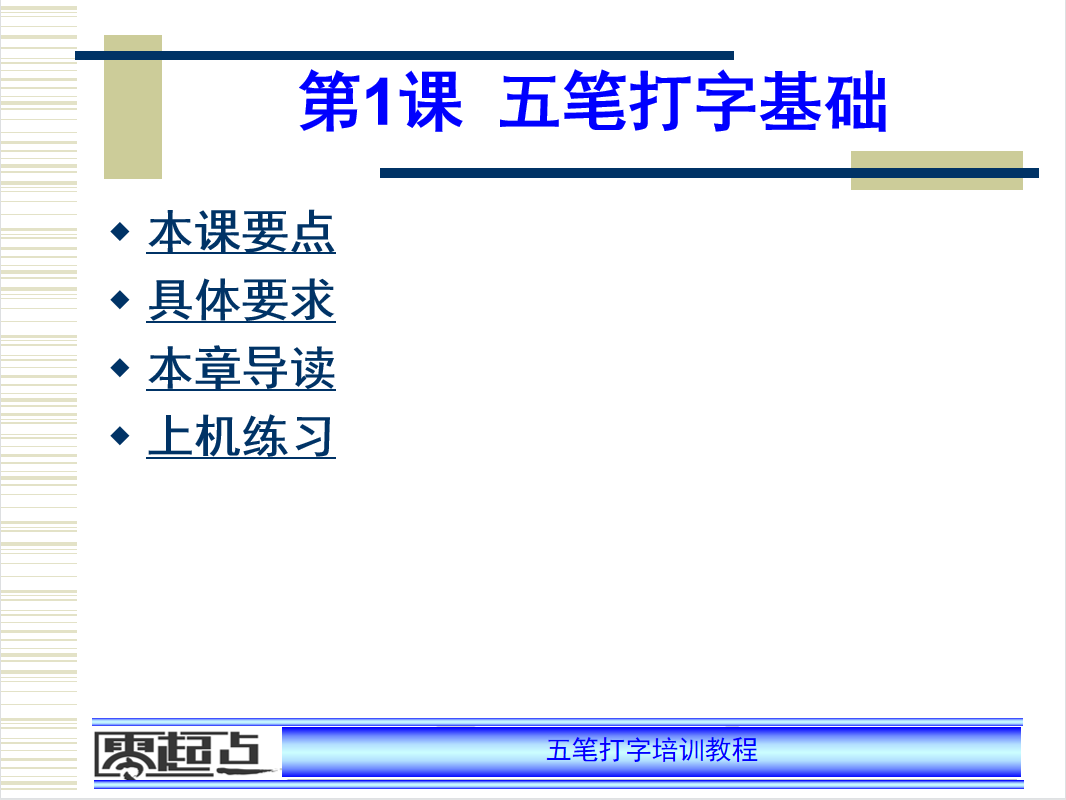 零起点-五笔打字培训教程,PPT 文件,压缩包中包含 PPT 播放器。