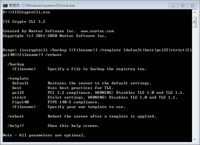 运行 IIS Crypto 需要 Windows Server 2008 和 .Net 4.0 Framework 或更高版本。GUI 图形版和命令行版都可用。