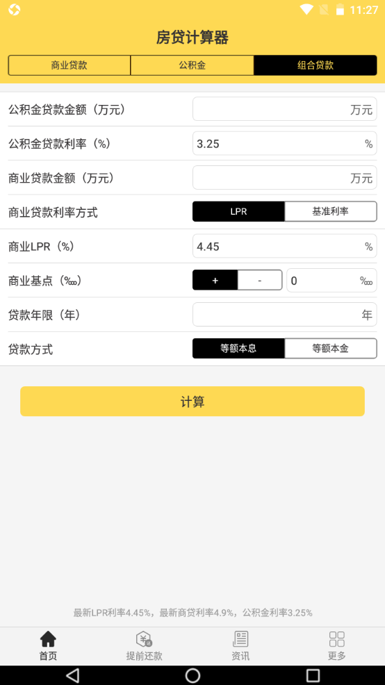 一款用于计算房贷的手机 APP,商业贷款、公积金、组合贷款,提前还款计算,房贷年利率表,房贷知识,银行电话。