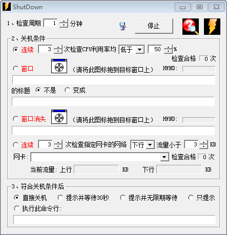 A:ShutDown 只能运行在中文、英文 Windows 2000、XP 下,不支持 Windows 95/98/ME。其它语种的 Windows 2000/XP 大概只能用窗口标题条做关机条件,不能用 CPU 利用率。