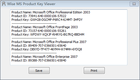 Wise Windows Key Finder 是一款操作简便又实用的免费软件。当用户打开软件时会自动查找并显示 Windows 或 Microsoft Office 密钥/激活码,用户仅需另存为文本即可,还可以进行打印等操作。