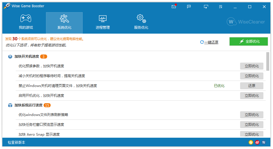 Wise Game Booster V1.57(游戏加速,系统优化)