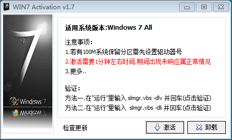 Win7 Activation V1.7(Windows 7 系统激活)