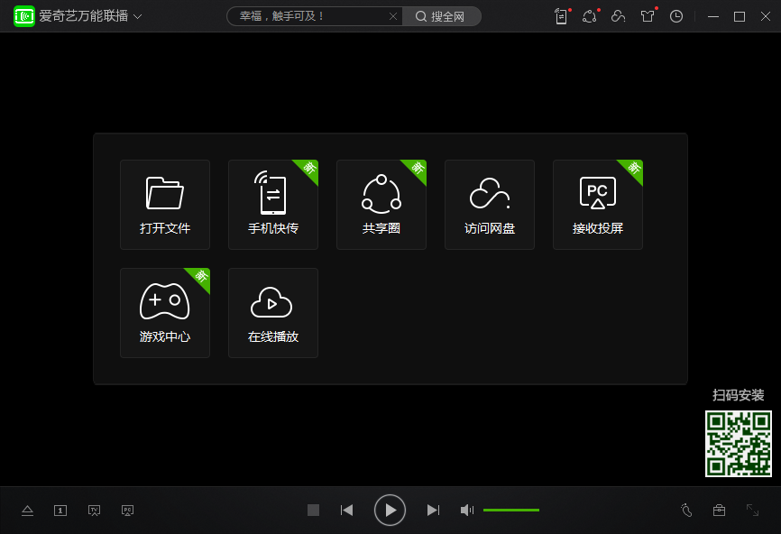 万能联播是爱奇艺出品的一款免费的音视频播放和快传工具 APP,它是音频、视频播放器,支持近场免流的大文件快传功能,它也是爱奇艺万能播放器 PC 端及 iOS 端的升级版。