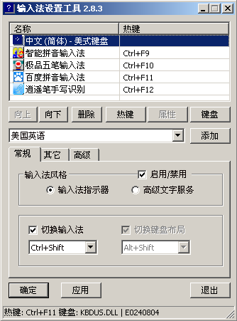 IMETool:功能最全面的输入法设置工具,主要特色功能:1、动态调整输入法顺序而无须重启。2、突破 Windows 限制,任意设置输入法热键。3、可以切换“高级文字服务”和“输入法指示器”两种工作模式。4、可以修复常见的因注册表错误引起的输入法混乱问题。5、可以从注册表中卸载输入法。6、体积小巧,仅一个几十K大小的文件,无须安装。