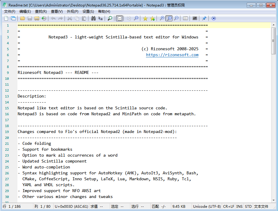 Notepad3 是一款基于 Scintilla 的文本编辑器,可以被称之为 Windows 记事本第一平替。Notepad3 参考了部分 Notepad2 和 MiniPath 的代码。Notepad3 不仅快速轻量,而且还拥有语法高亮功能。Notepad3 内存占用极小,但功能强大,可以轻松地处理大多数编程任务。