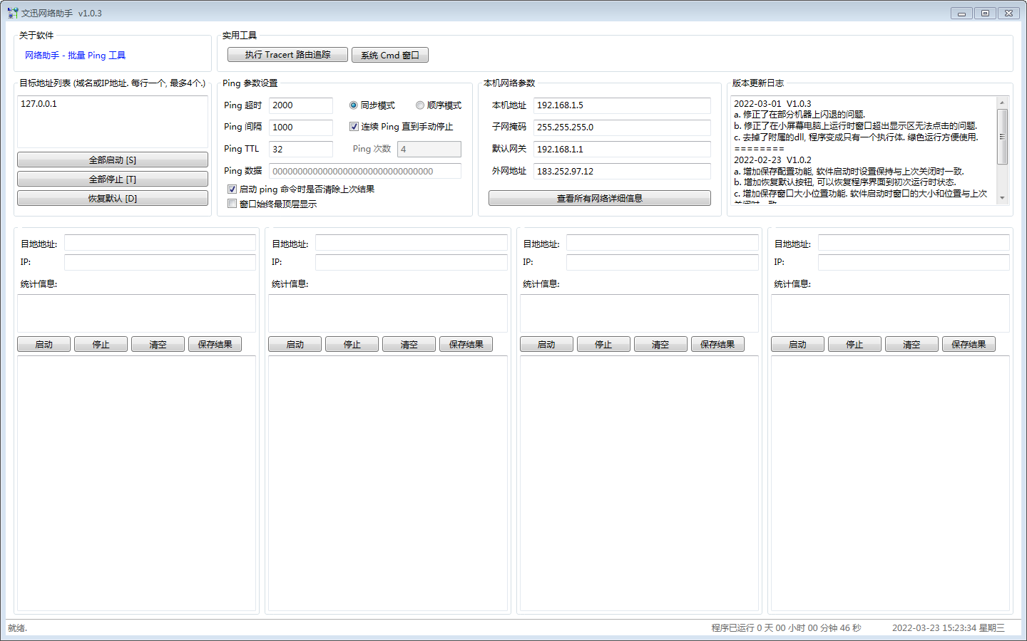 1、同时针对四台设备进行不间断的 Ping 操作;