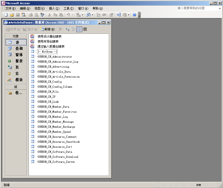 使用方法:1、运行 初始化.vbs;2、运行 Access 2003.exe 开始使用。在 Windows XP 系统使用正常,其他系统未经测试。 |