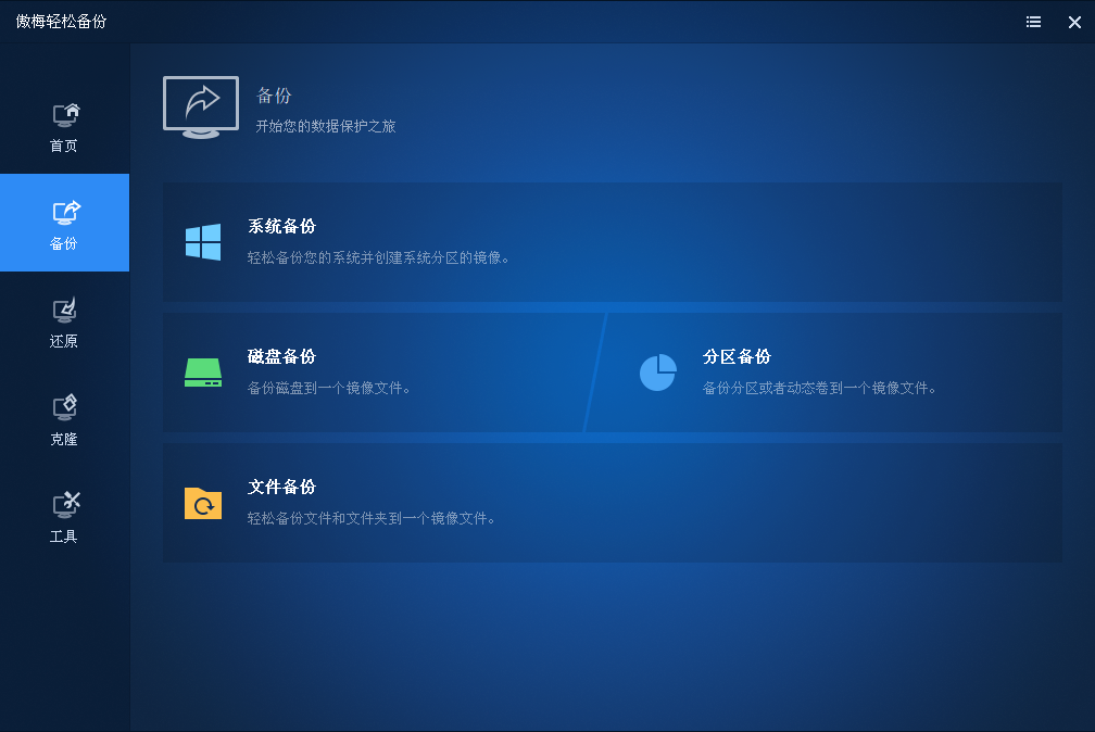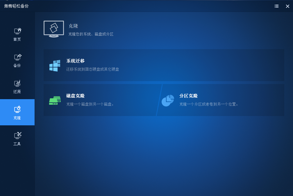 傲梅轻松备份在电脑发生异常、数据丢失时,您可以轻易地还原系统和数据到正常的状态,除了备份外,还支持系统迁移、硬盘对拷、分区克隆等功能。