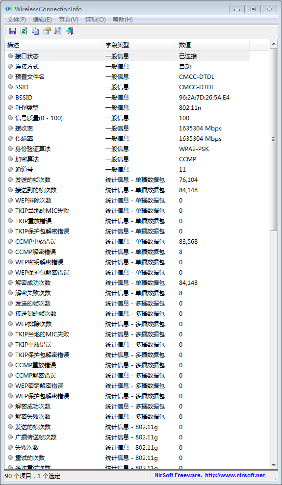 NirSoft WirelessConnectionInfo V1.16(Wi-Fi/无线网络连接信息)
