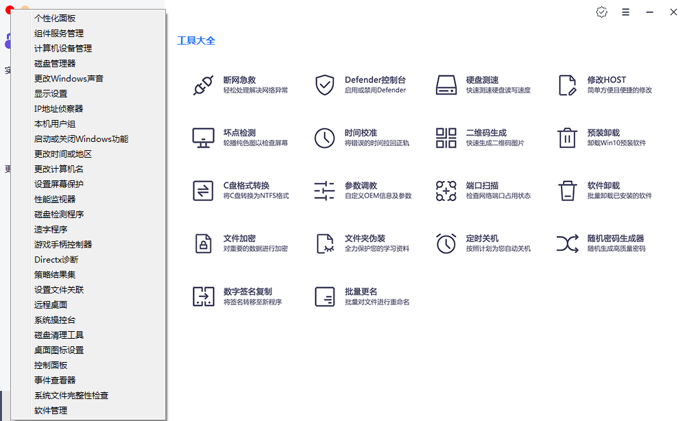 一款功使用便捷的 Windows 系统管理软件。Windows 超级管理器官方版提供全面的系统检测功能,Windows 超级管理器能高效地帮助用户查看和了解计算机参数配置,软件并且附带多个实用的工具功能,软件的硬盘测速功能可以在数秒钟相对准确地测试出用户硬盘的读写速度。