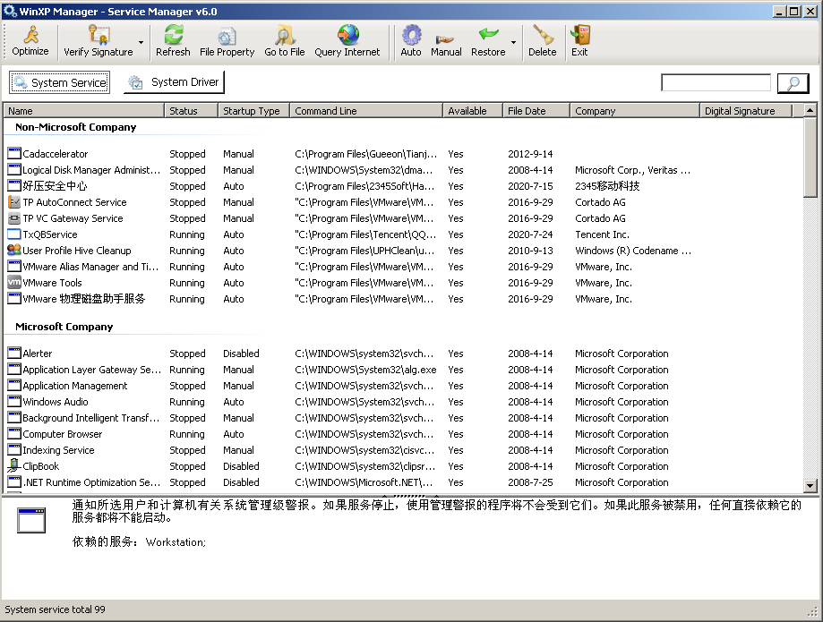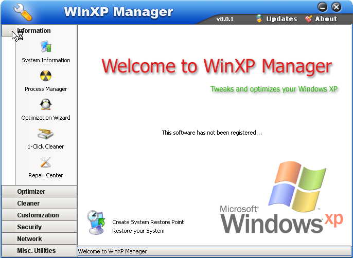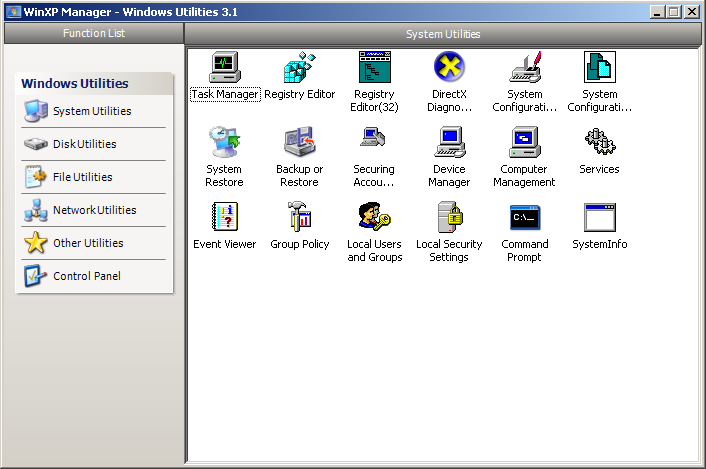 WinXP Manager,也称 WinXP 总管,一款优化及设置 Windows XP 的系统工具。它里面集成了超过43个不同的功能,它能增加您的系统速度,提高系统安全性以及使之更符合您的个性!