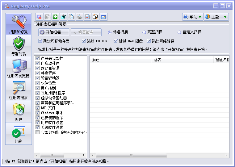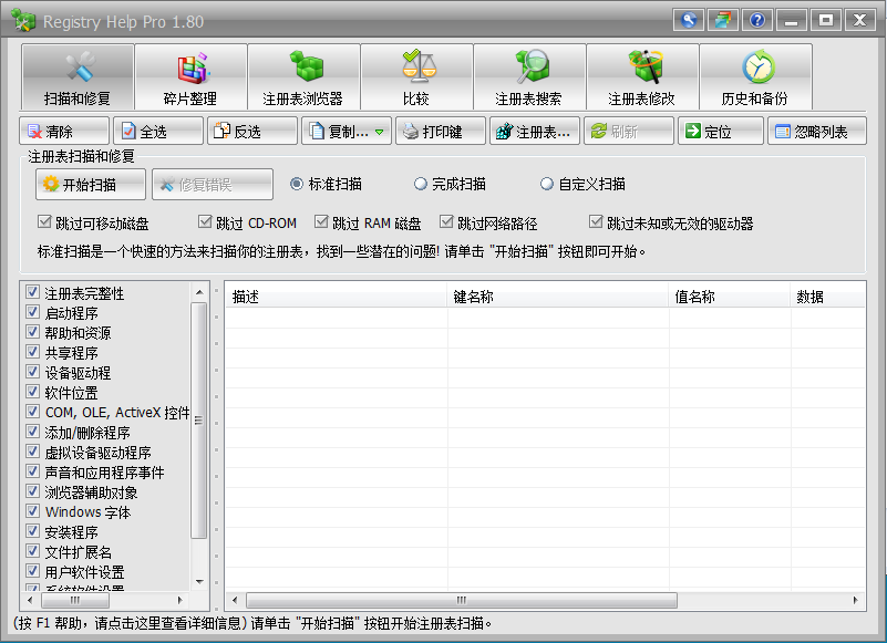 一款高级的 Windows 注册表优化和管理软件。可对注册表进行检查和修补,搜寻,备份,比较,浏览和编辑的操作。只是通过几次单击,注册表帮助可以清洁和修复您的注册表、 磁盘碎片整理您的注册表文件、 加快您的计算机,和优化您的系统。