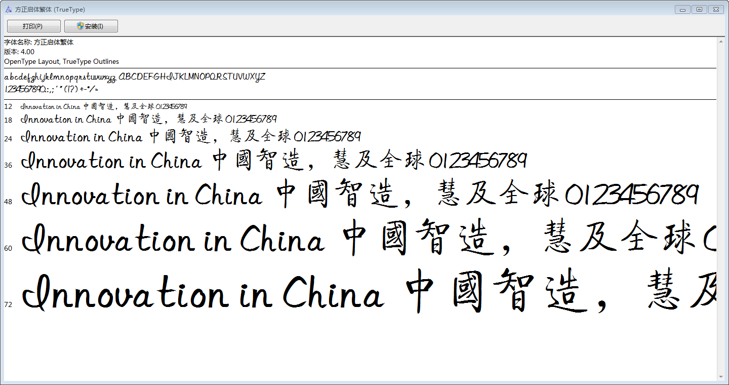 双击打开字体文件(.otf/.ttf)的预览窗口,单击[安装]按钮开始安装