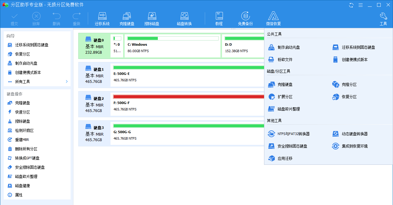 傲梅分区助手是一个简单易用且免费的无损分区软件,作为无损分区的先行者,在它的帮助下,您可以无损数据地执行调整分区大小,移动分区位置,复制分区,快速分区,复制磁盘,合并分区,切割分区、恢复分区、迁移操作系统等操作,是一个强大的分区工具。它不仅仅支持 Windows XP/WinPE,还支持 Windows 7/Vista 和 Windows 2003/2008。不管是普通的家庭用户还是高级的服务器用户,分区助手都可以提供功能全面、稳定靠谱的磁盘分区管理服务。同时,分区助手的新版本是完全可以运行在 Windows 11/10/8/8.1 和 Windows Server 2012/2016/2019 系统上。
