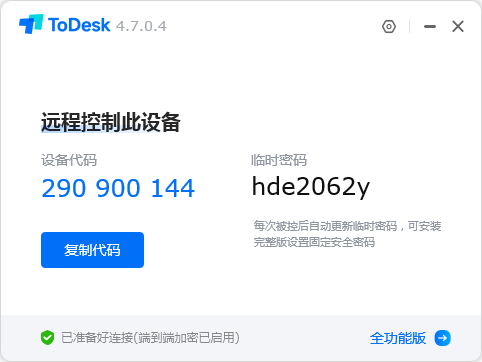 被控端/客户端:全功能版被控端,可直接访问,适用于远程办公/无人值守场景;