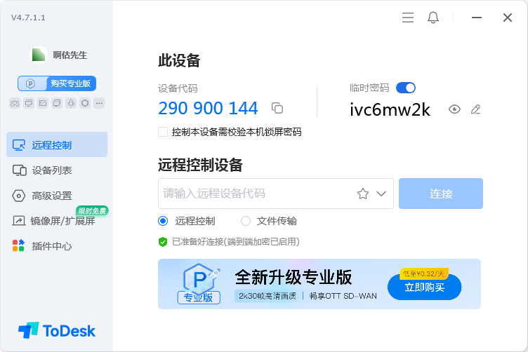 超越光速就可以使时光倒流?ToDesk 有超快的 1080P 高清屏幕控制,文件传输。多区域机房、G级宽带服务器加速以确保您每一次的远程访问稳定、流畅。