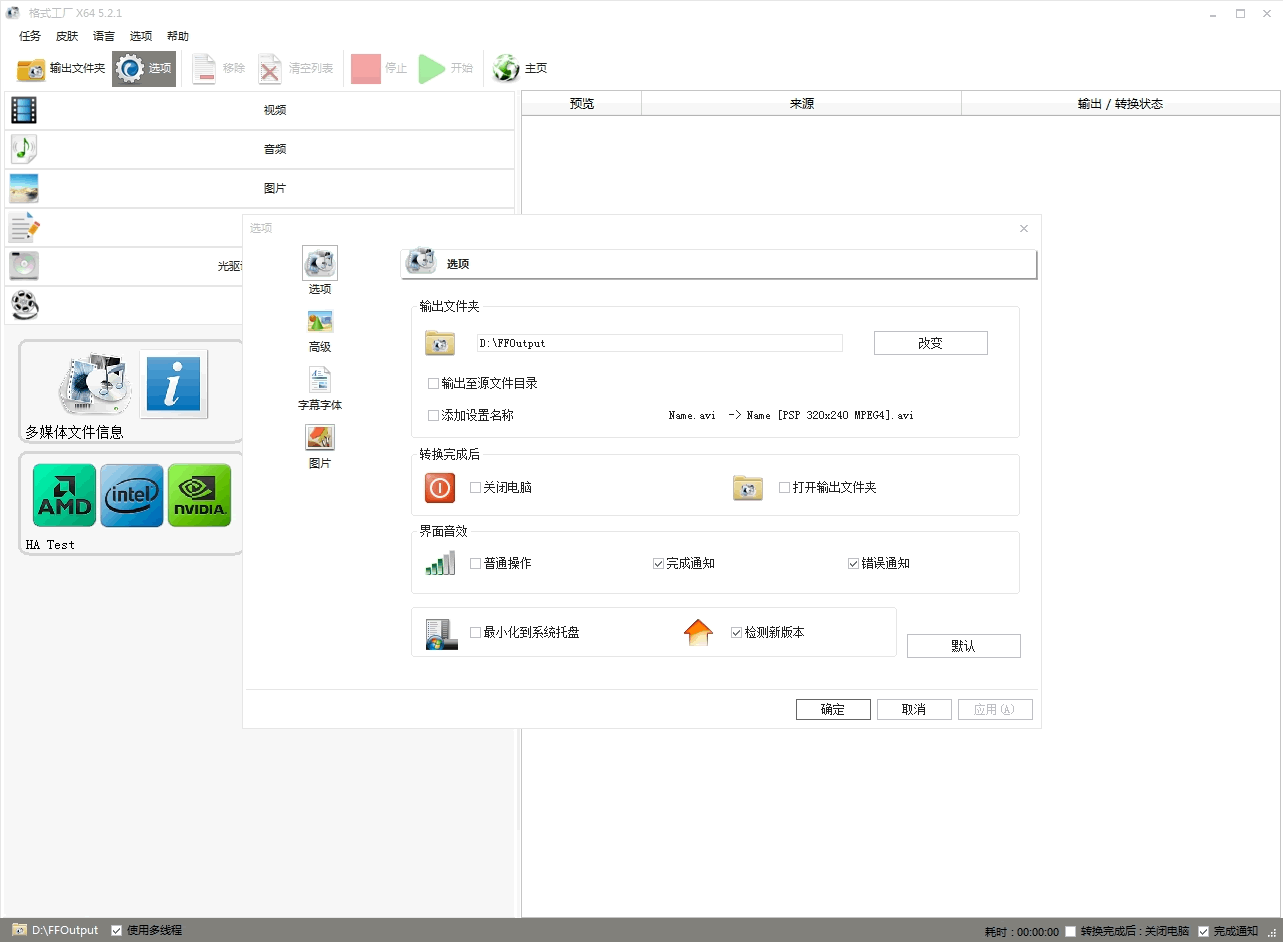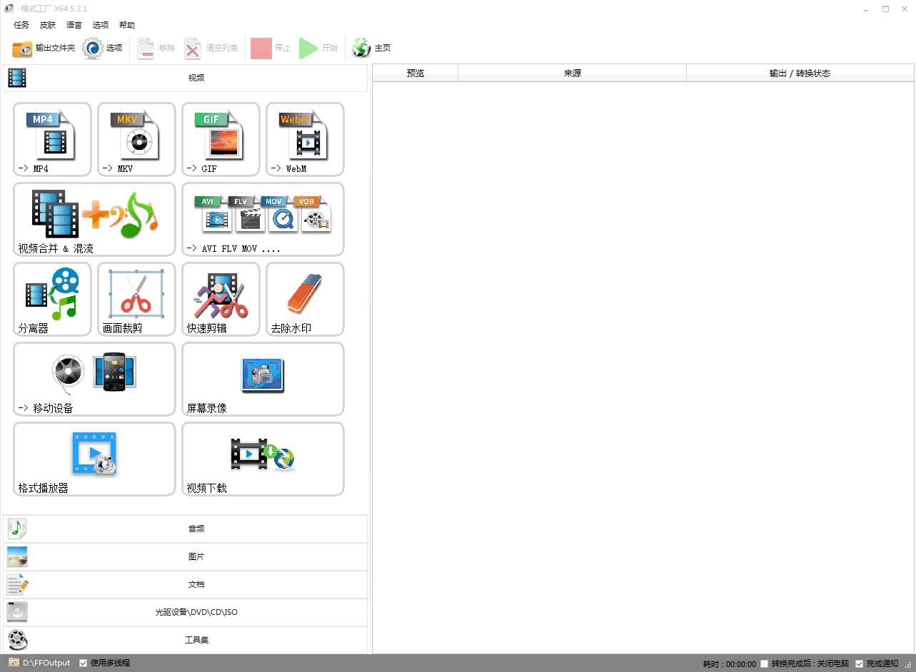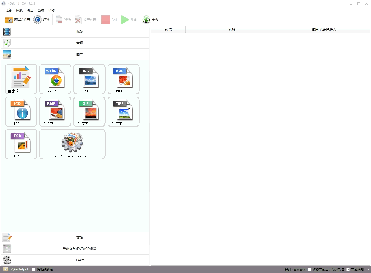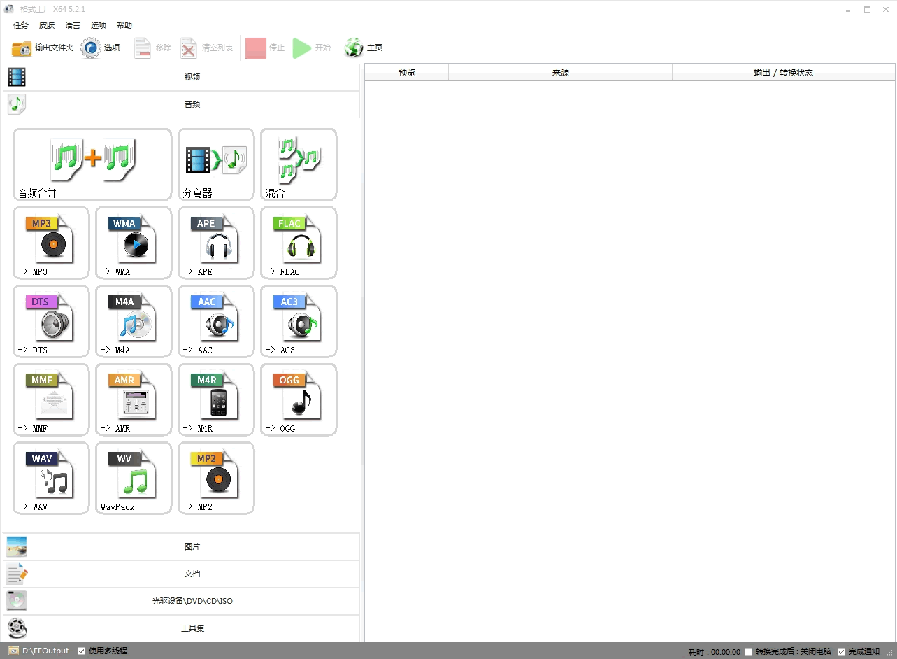格式工厂 V5.21(FormatFactory,视频/音频/图片/文档格式转换软件)