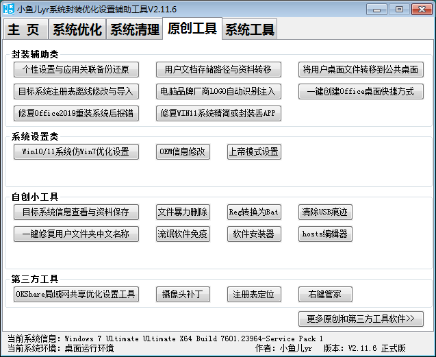 小鱼儿yr系统封装优化设置辅助工具 V2.11.8 正式版