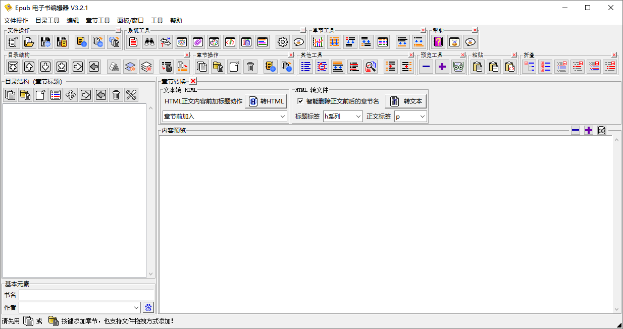本软件主要支持多重目录结构的 ePub 电子书制作,方便将导入章节文件直接生成带目录的 ePub 文档,也可以检索章节信息自动生成目录,也能支持将ePub书籍分解成文本文件。能完美地配合《小说规则下载器》,能直接将其下载的章节文件快捷地制作成 ePub 电子书。