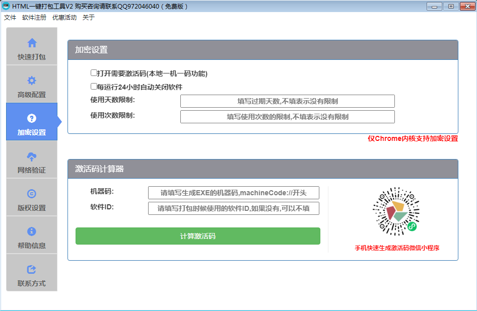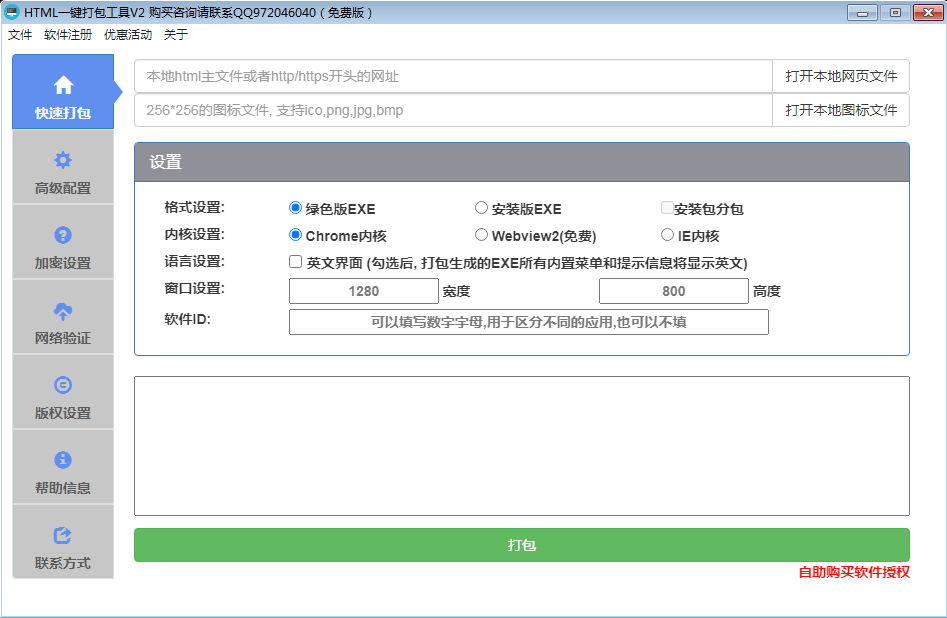 打包工具支持 Chrome 内核和 IE 内核,可以根据需求选择使用;