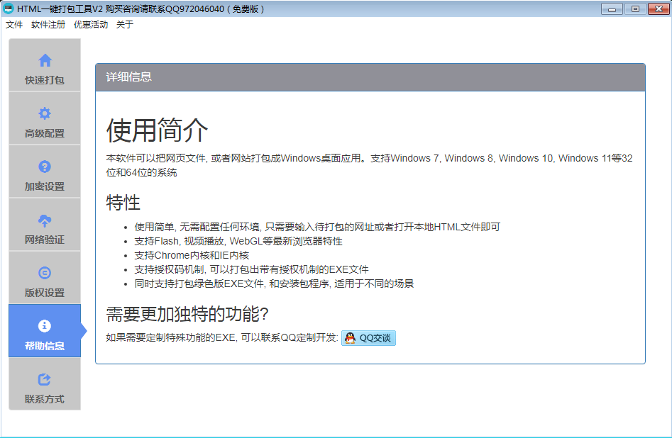 HTML 一键打包 EXE 工具(HTML 封装 EXE,桌件)能把任意HTML项目(网址)一键打包为单个 EXE 文件,可以脱离浏览器和服务器,直接双击即可运行。支持 KRPano 全景 VR 项目,WebGL 游戏项目(Egret 游戏打包,Cocos 游戏打包,RPG MV Maker 游戏打包),课件打包,网址打包等(可以把 HTML 转 EXE 文件,网址打包成 exe 文件)。