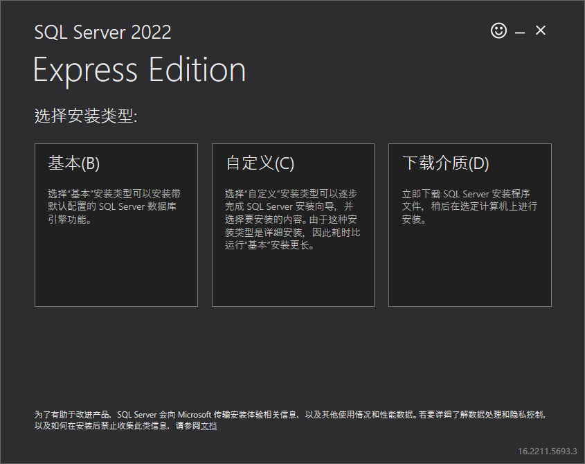 Microsoft SQL Server 2022 Express 下载与安装程序。